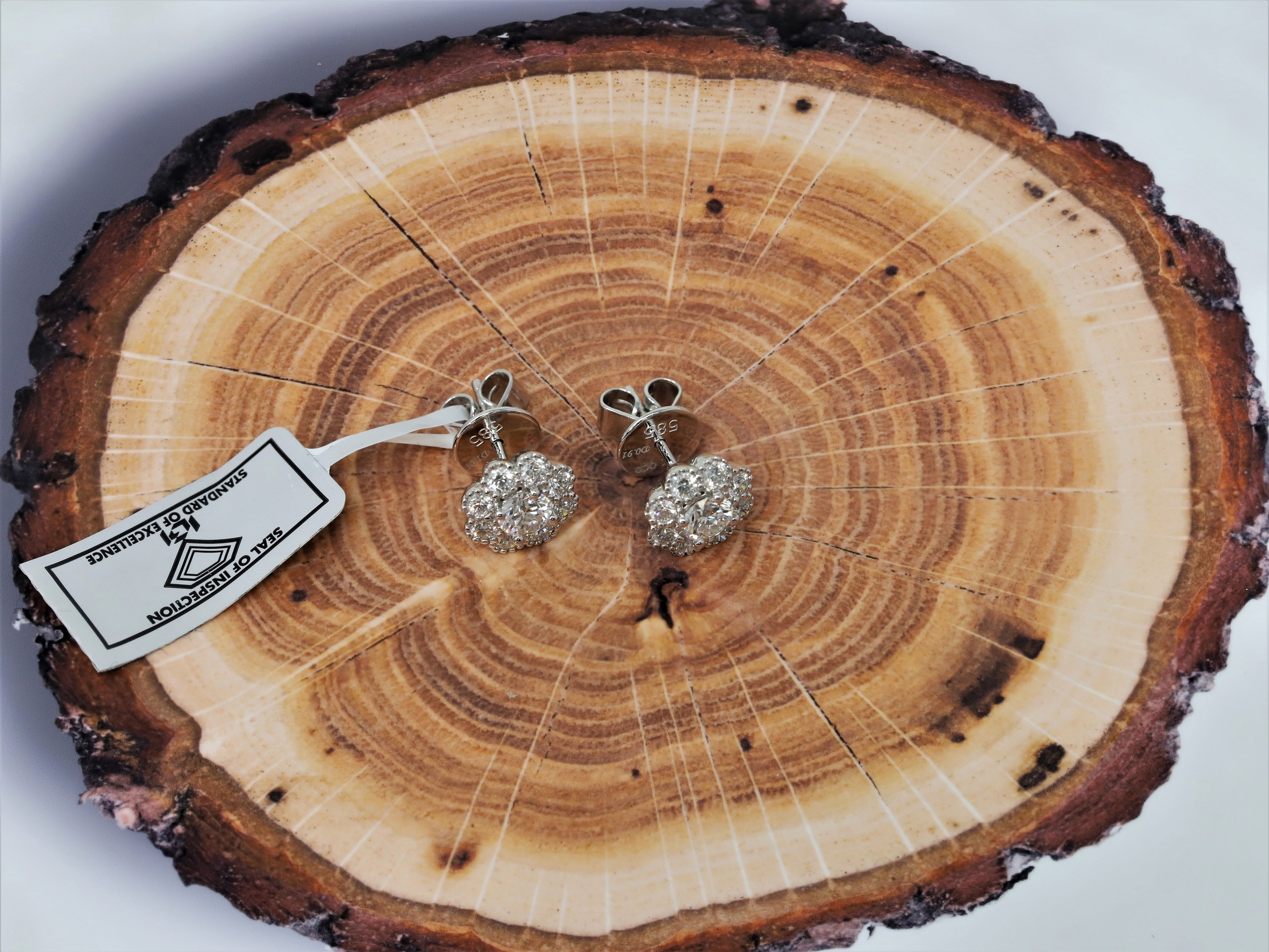 14K White Gold Lab Grown 5/8 Carat Diamond Flower Studs Earrings