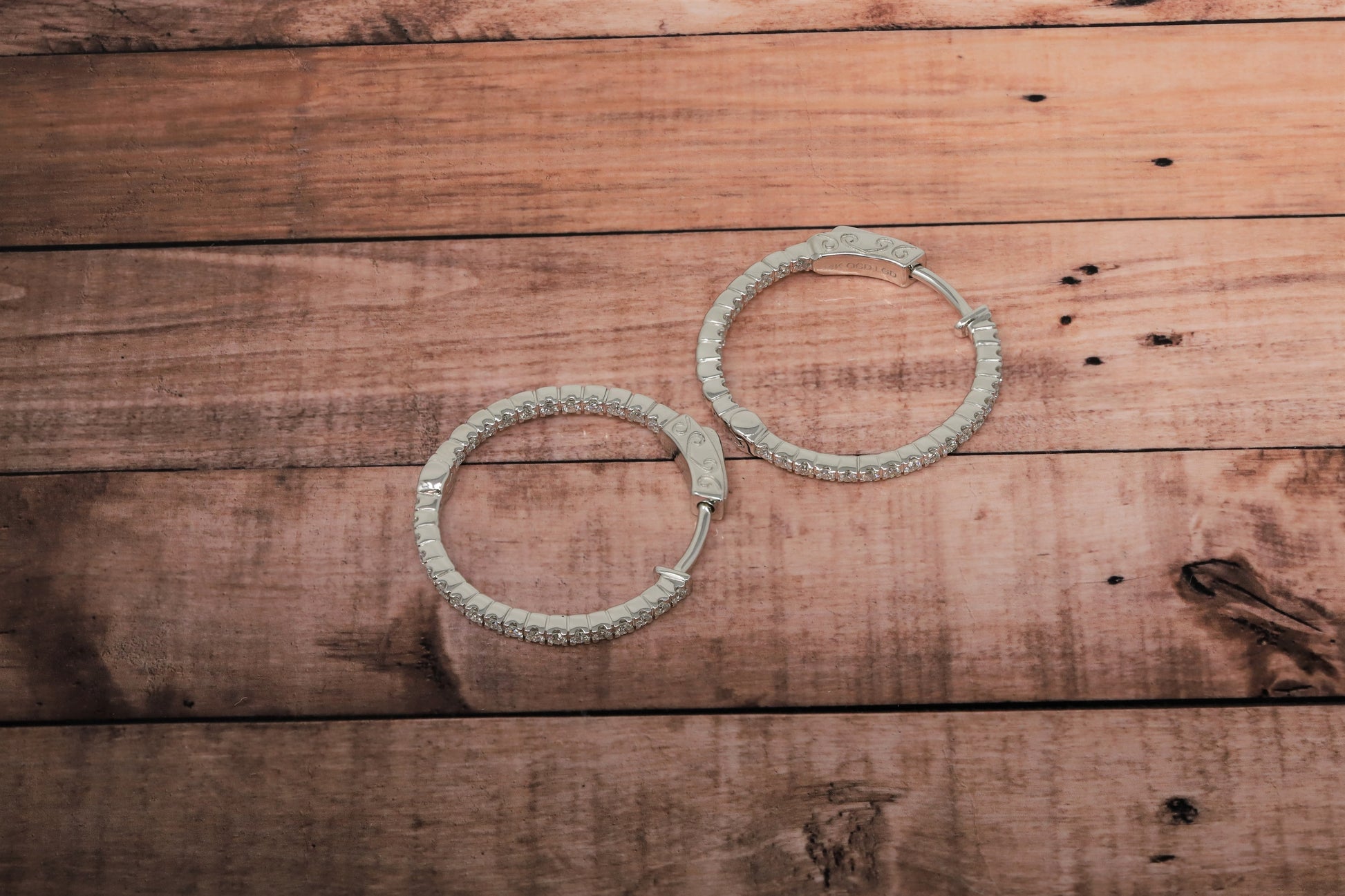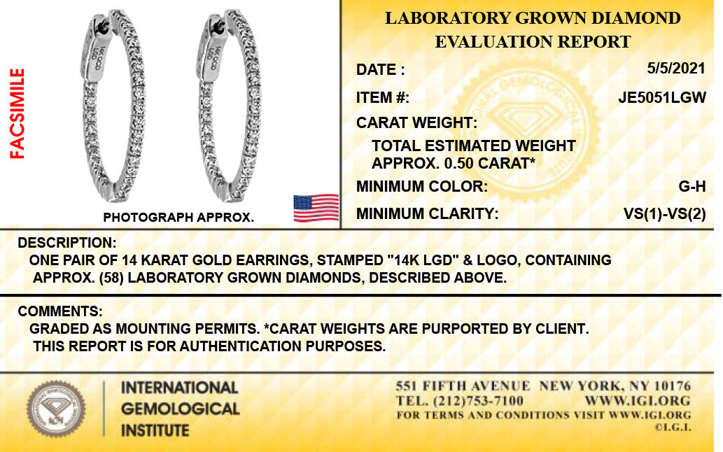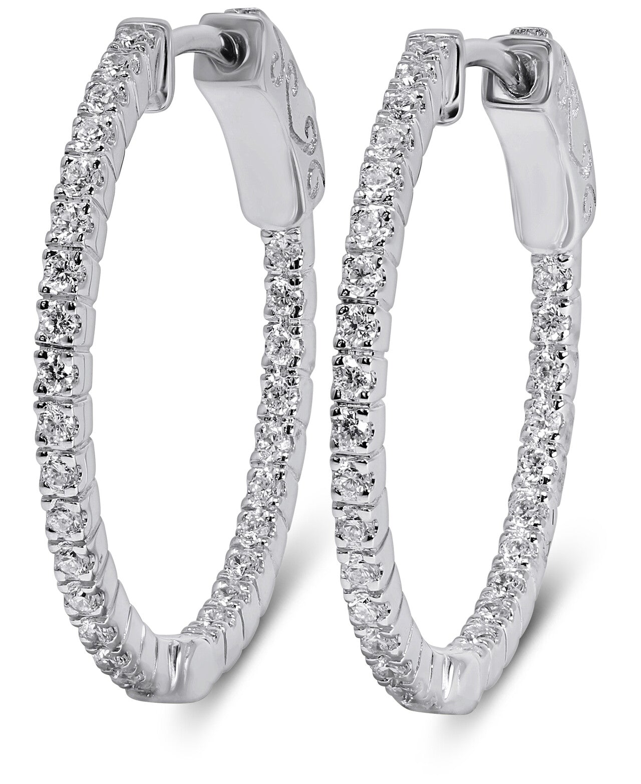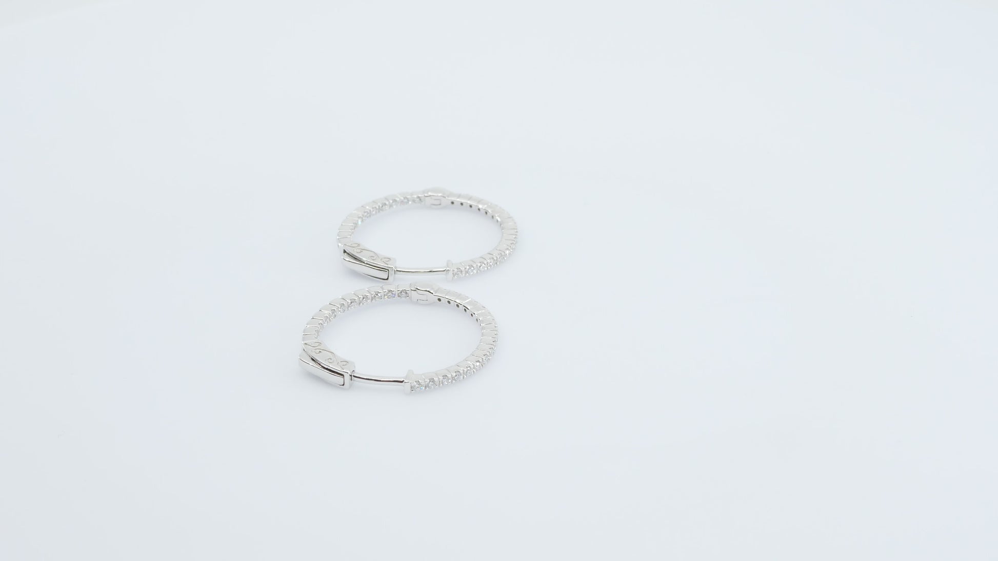 14K White Gold Lab Grown Diamond 1/2 Ct Inside Out Hoop Earrings, 2cm Diameter with IGI Certificate