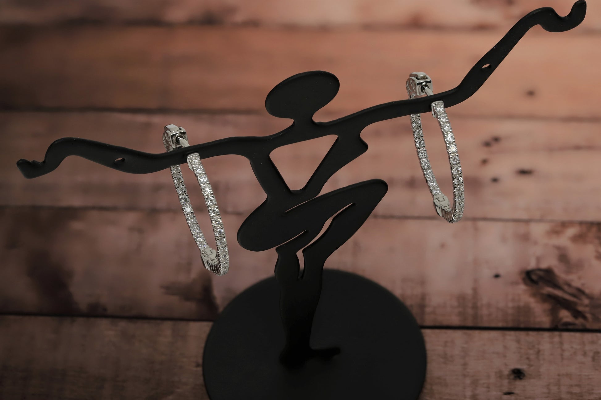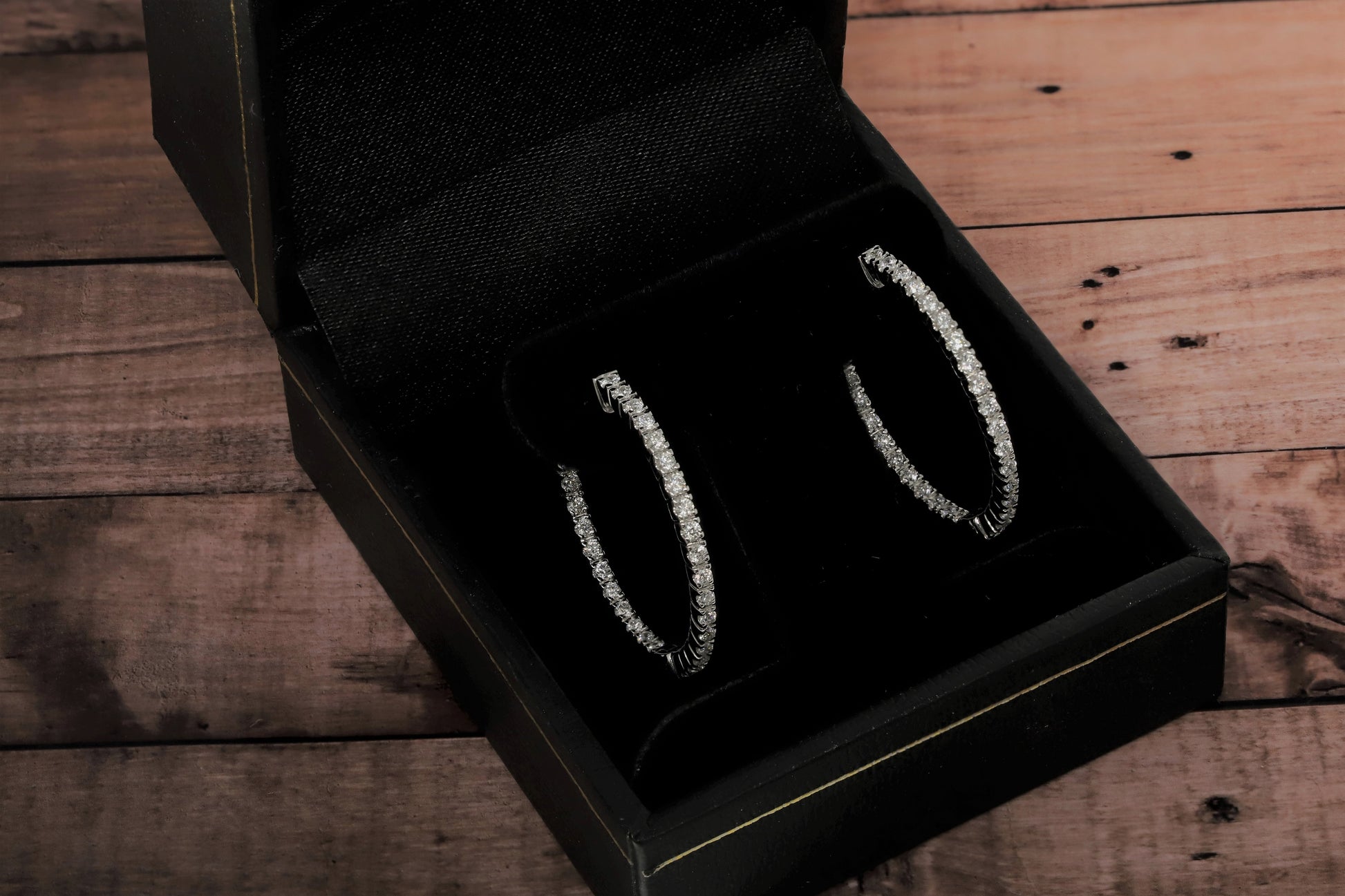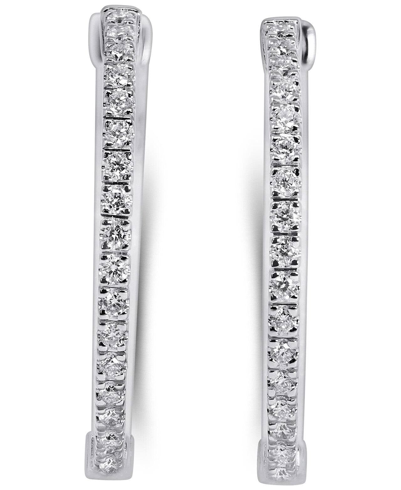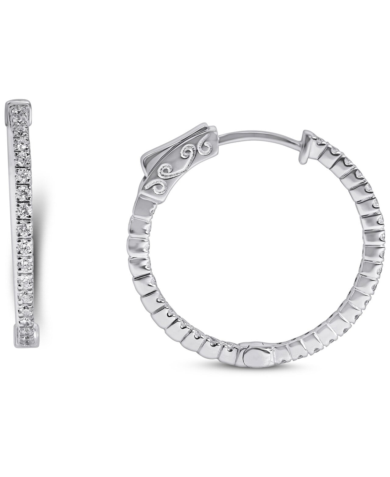 14K White Gold Lab Grown Diamond 1/2 Ct Inside Out Hoop Earrings, 2cm Diameter with IGI Certificate