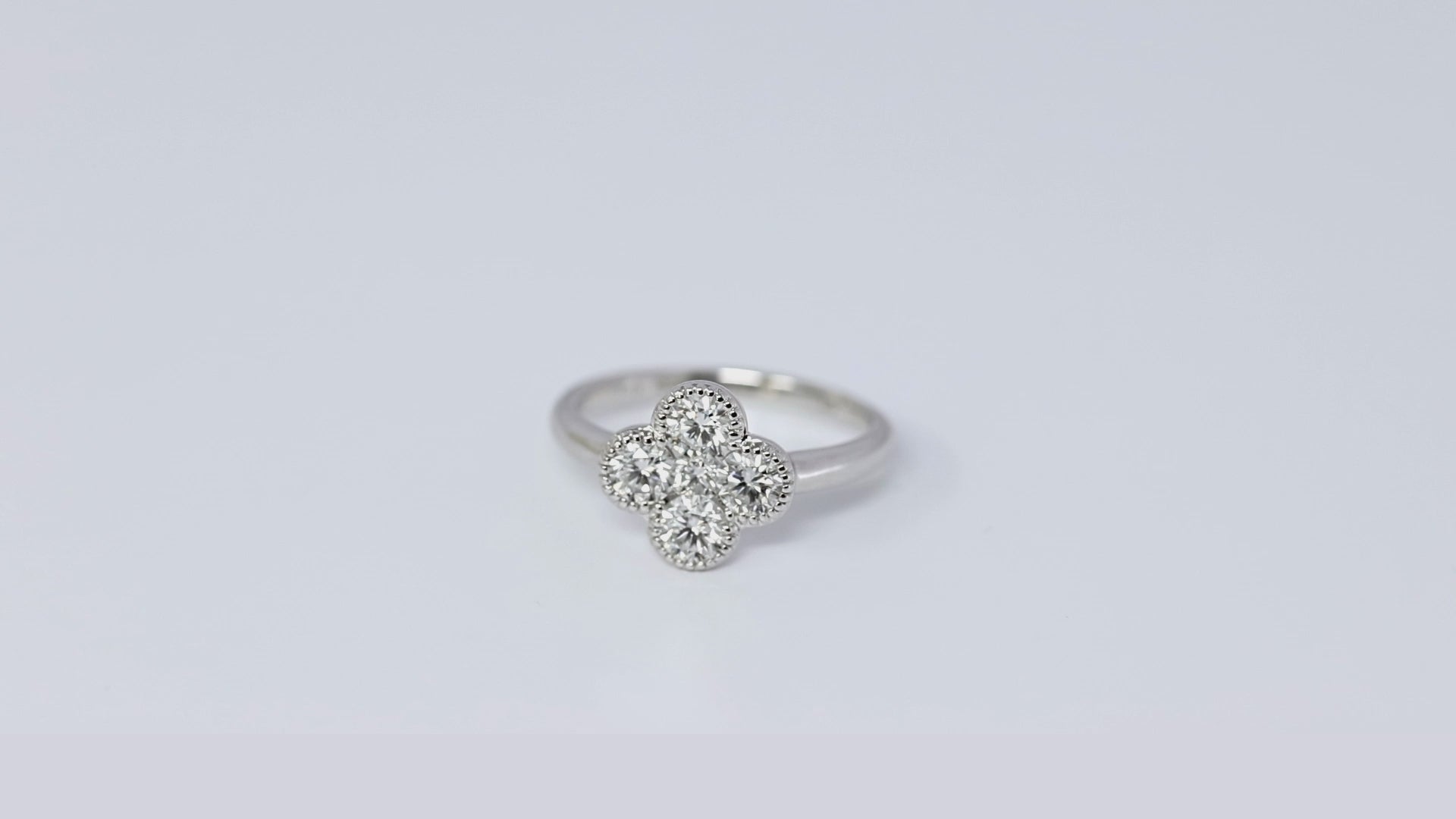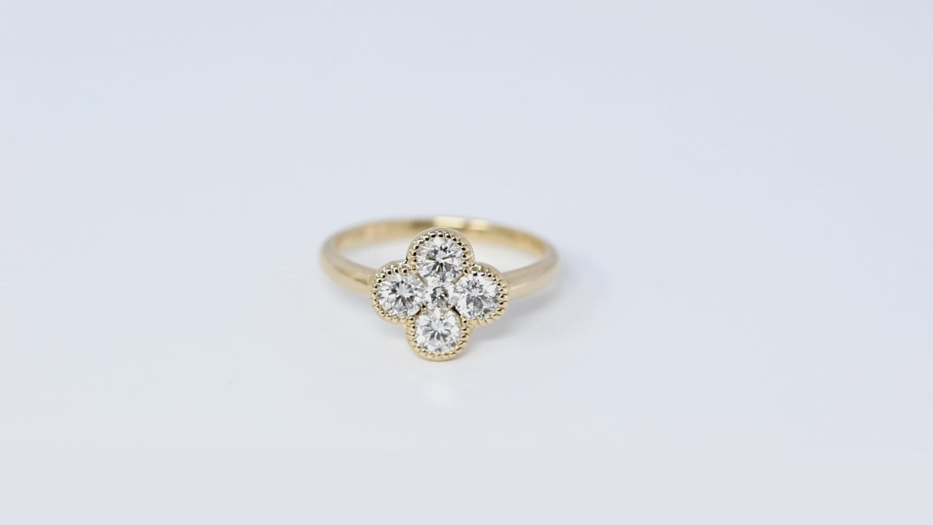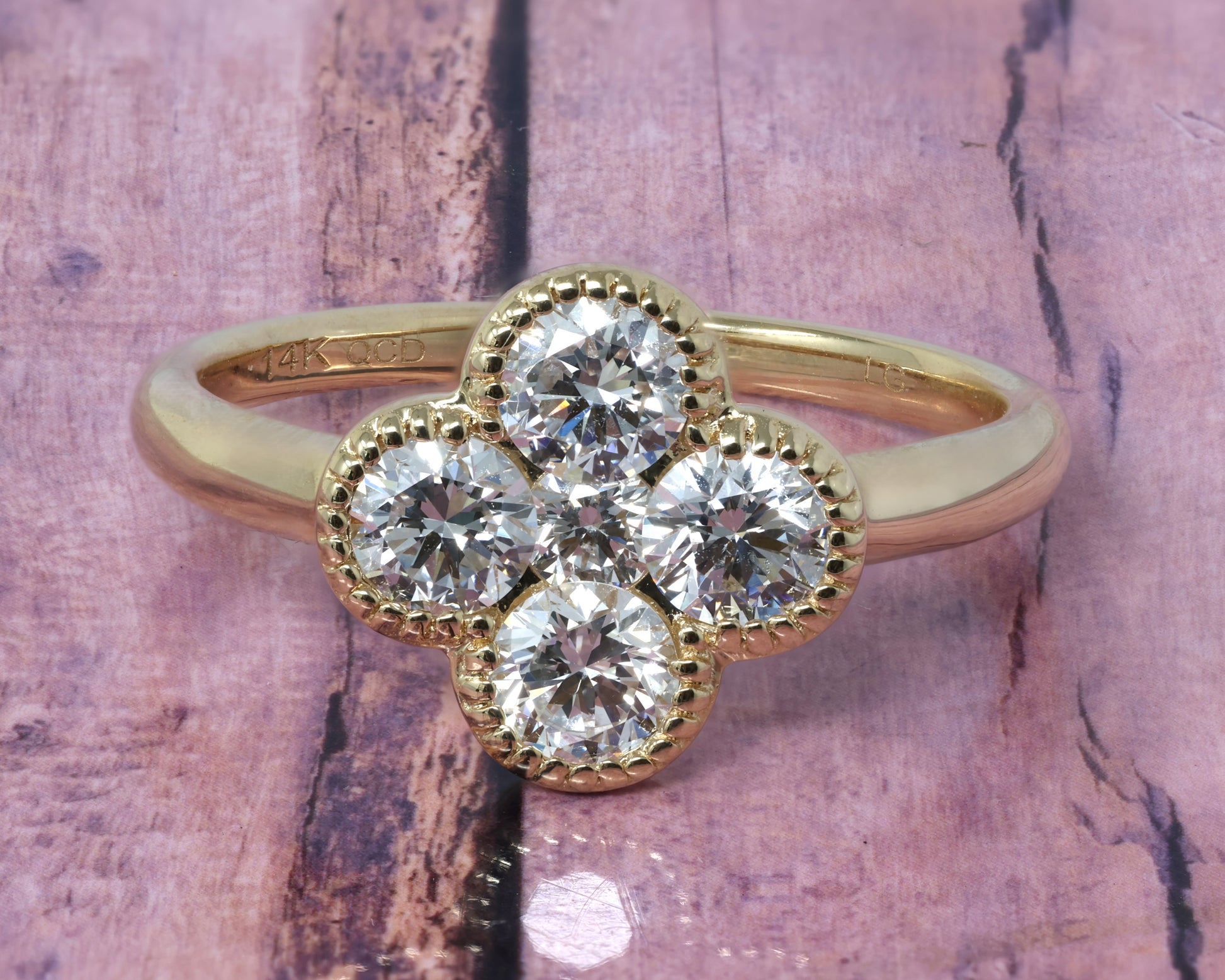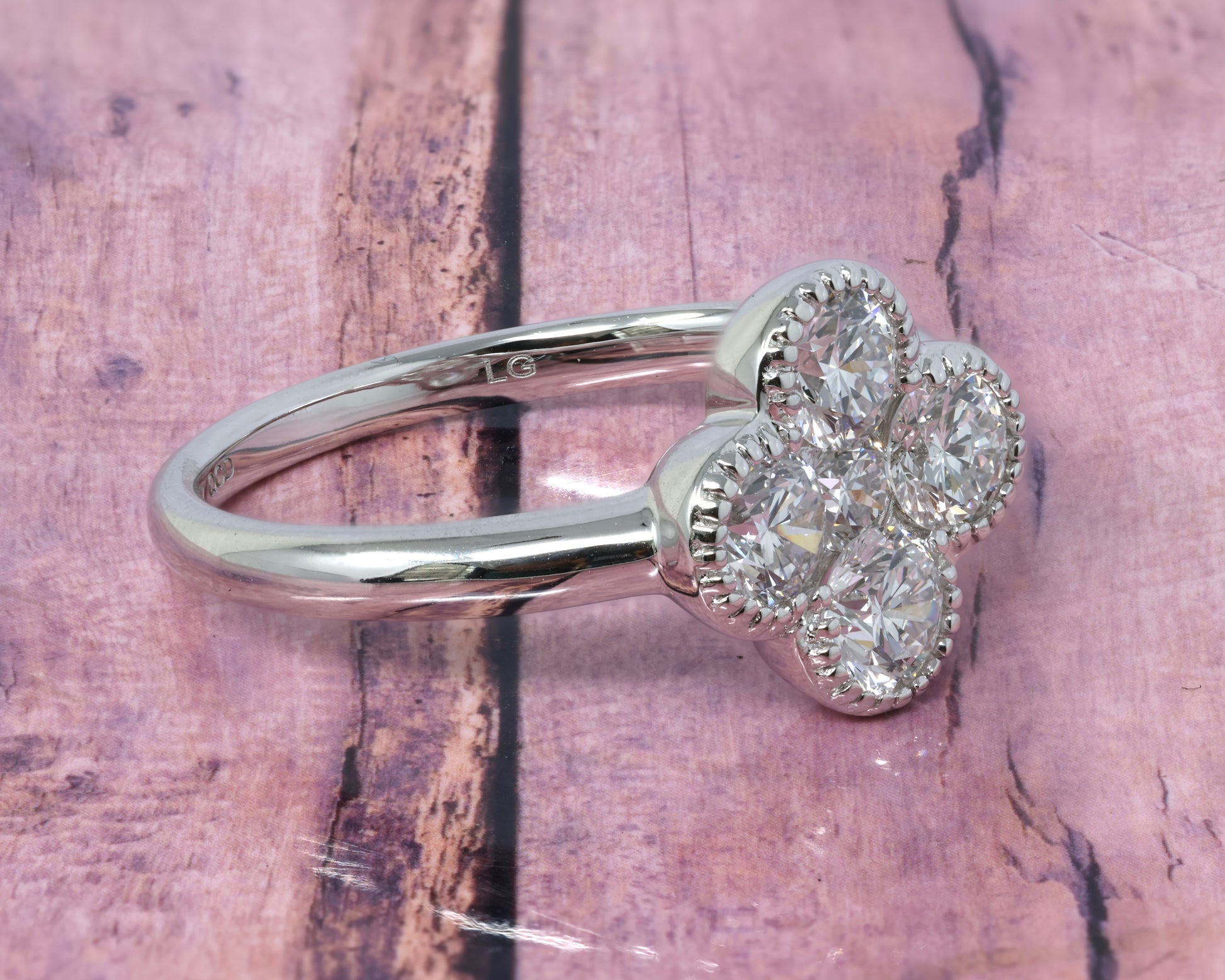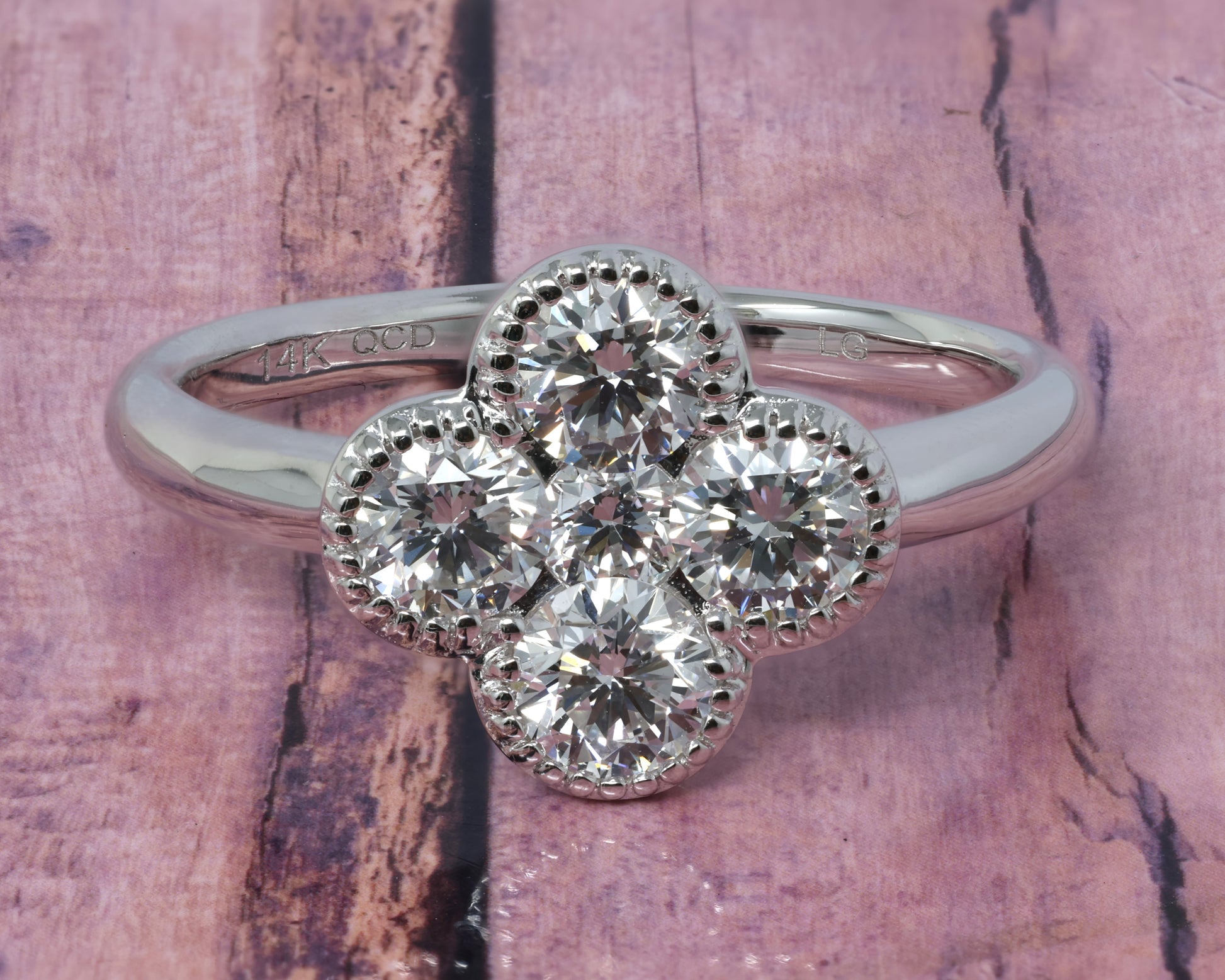 14K Solid Gold Lab Grown Diamond 1.06 Ct Four Leaf Clover Ring. Size 7
