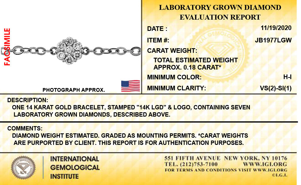 14K White Gold Lab Grown Diamond 1/5 Ct Flower Bracelet with IGI Certificate