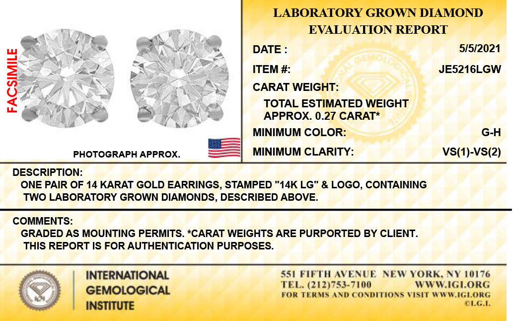 - Our lab-grown diamonds are IGI-certified