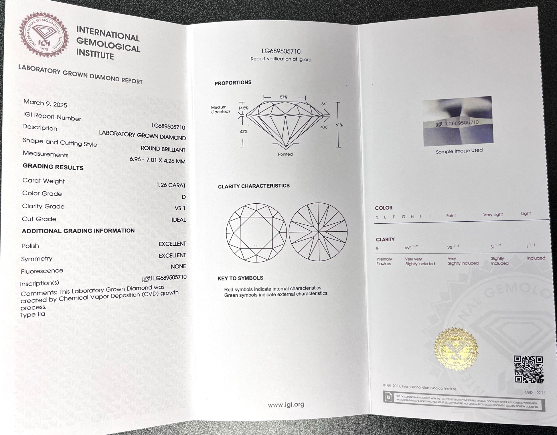 Top Quality Materials: 14K Solid White Gold, Lab Grown Diamonds 2-1/2 Ct Total Weight, D Color, VS1 Clarity