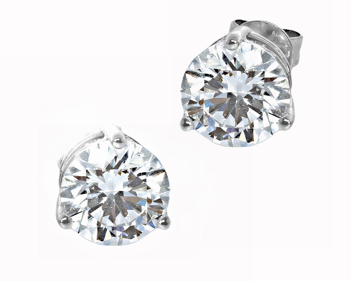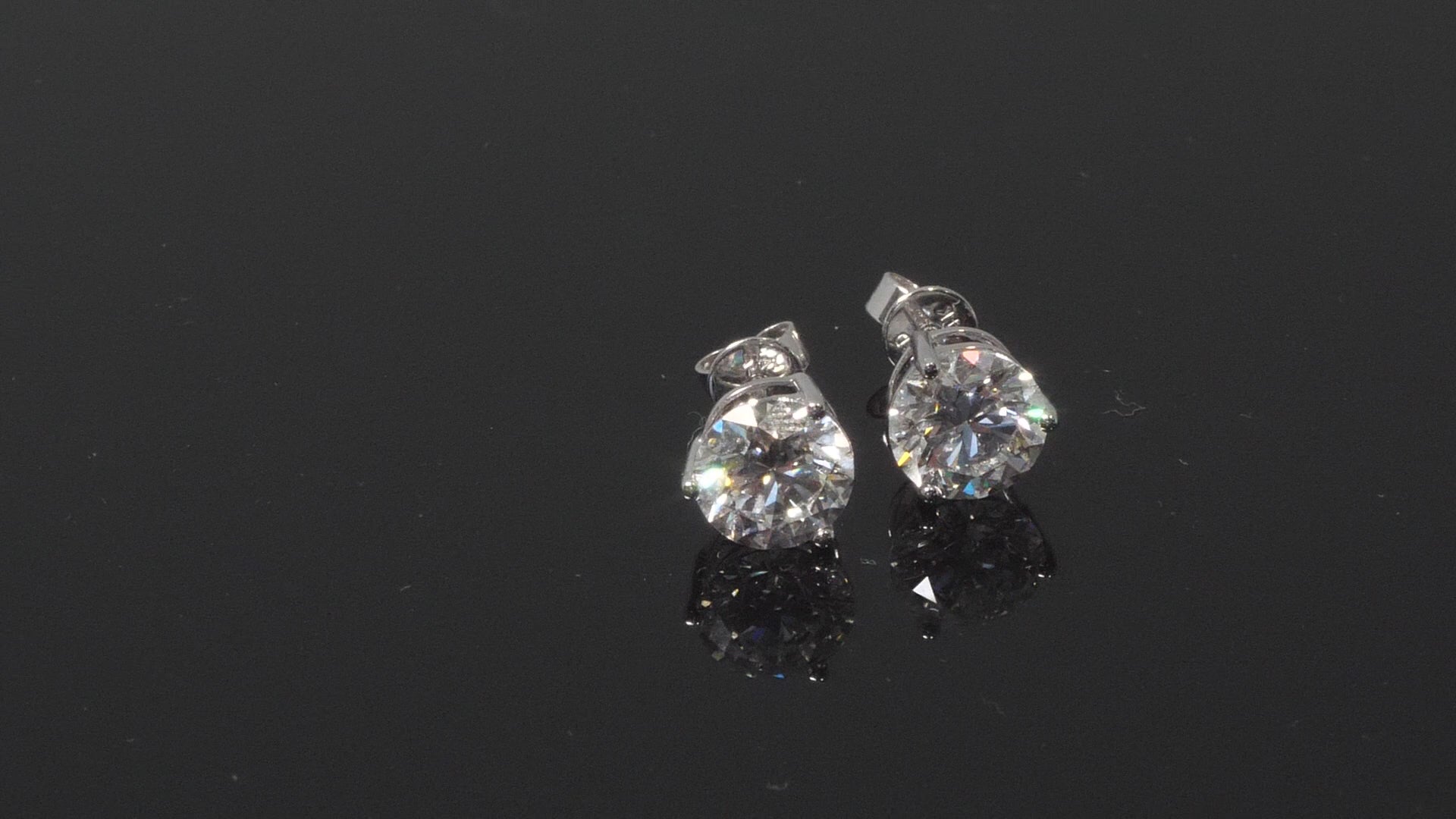 14K White Gold Lab Grown Diamonds 2-1/2 Ct Stud Earrings, IGI Certified, D-VS1