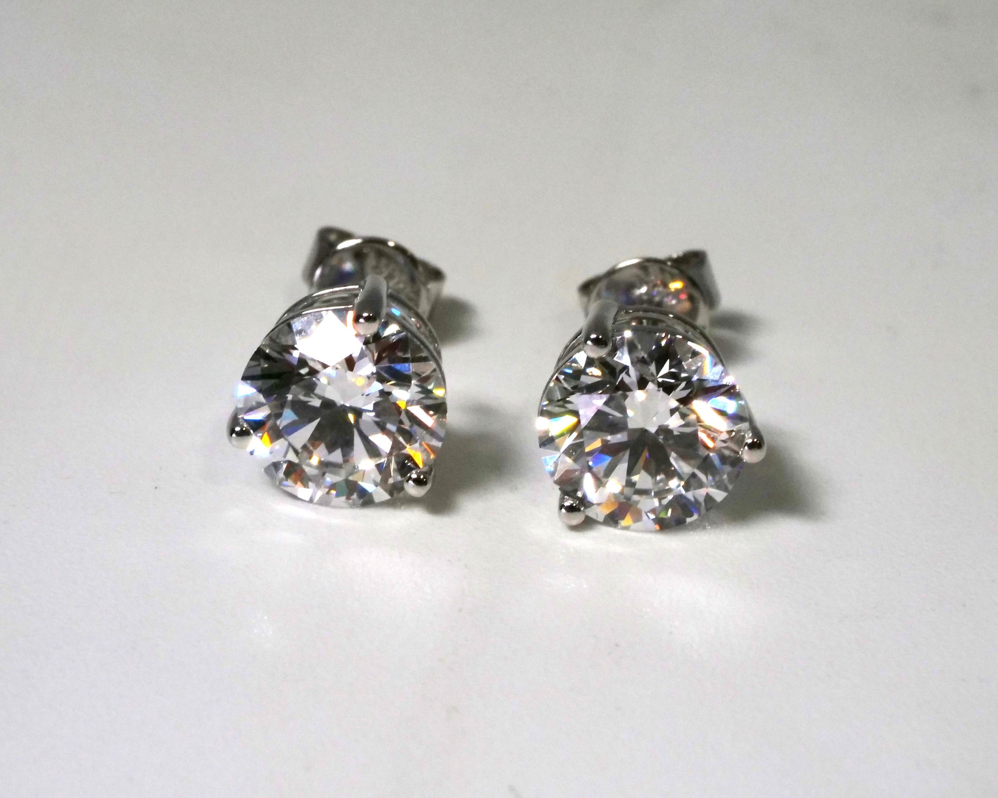 14K White Gold Lab Grown Diamonds 2-1/2 Ct Stud Earrings with IGI Certificate Unisex Jewelry