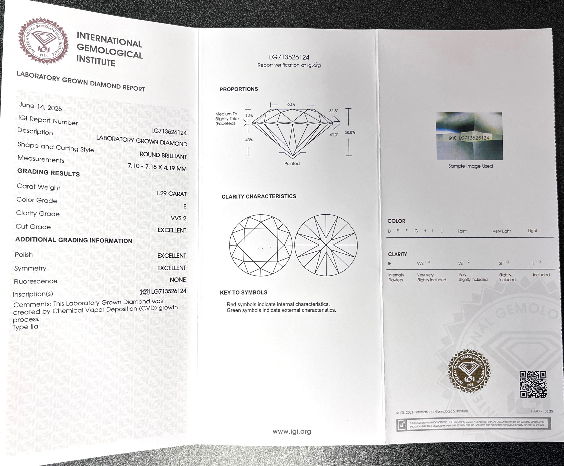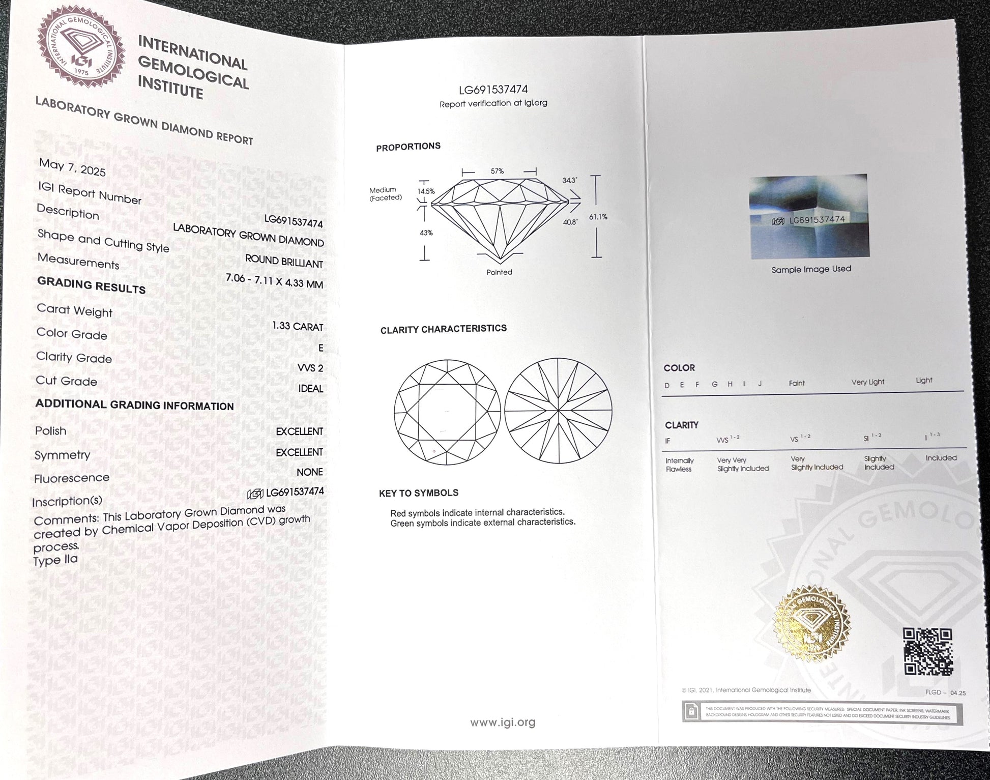Top Quality Materials: 14K White Gold, Lab Grown Diamonds 2-5/8 Ct Total with IGI Certificate E Color VVS2 Clarity