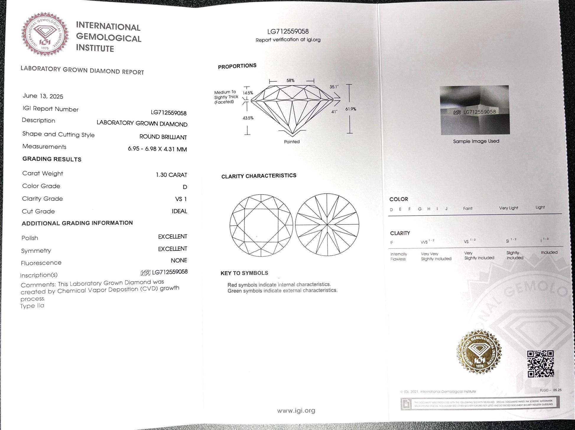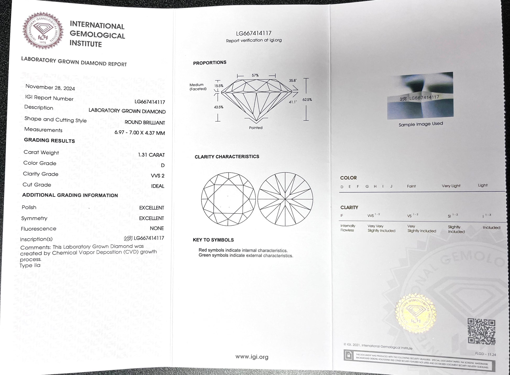 Top Quality Materials: 14K Solid White Gold, Lab Grown Diamonds 2-5/8 Ct Total with IGI Certificate, D VVS2 and D VS1