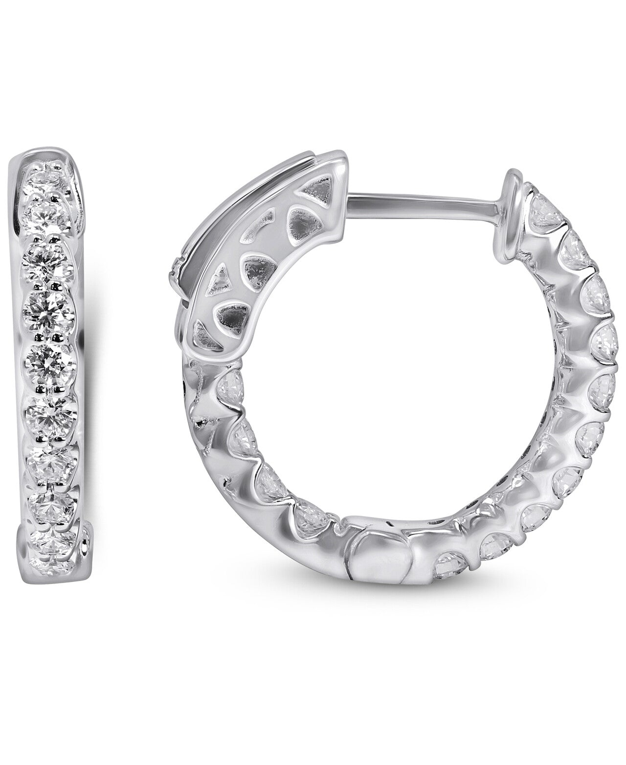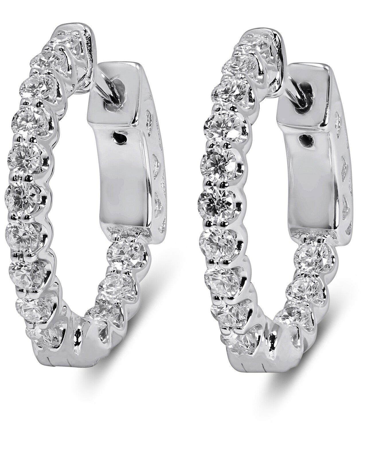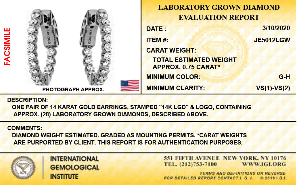 14K White Gold Lab Grown Diamond 3/4 Ct inside out Hoop Earrings, 2cm Diameter, IGI Certificate