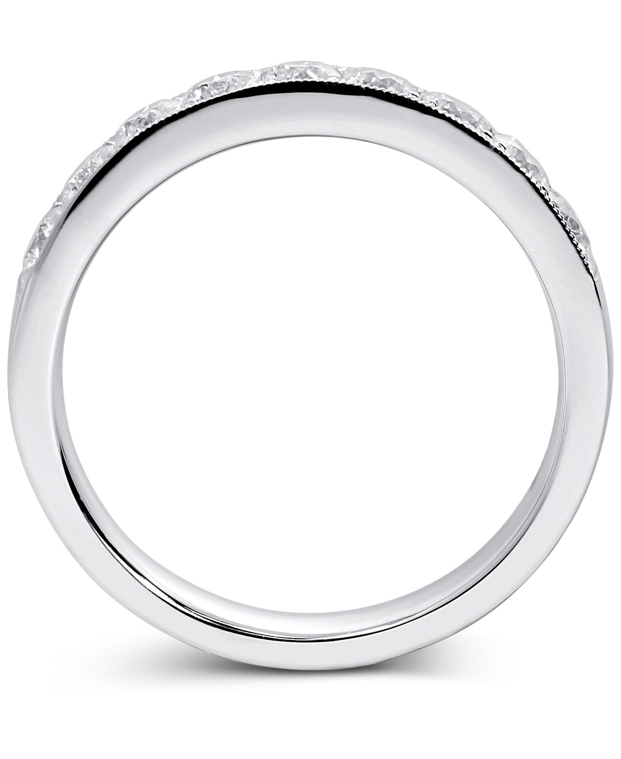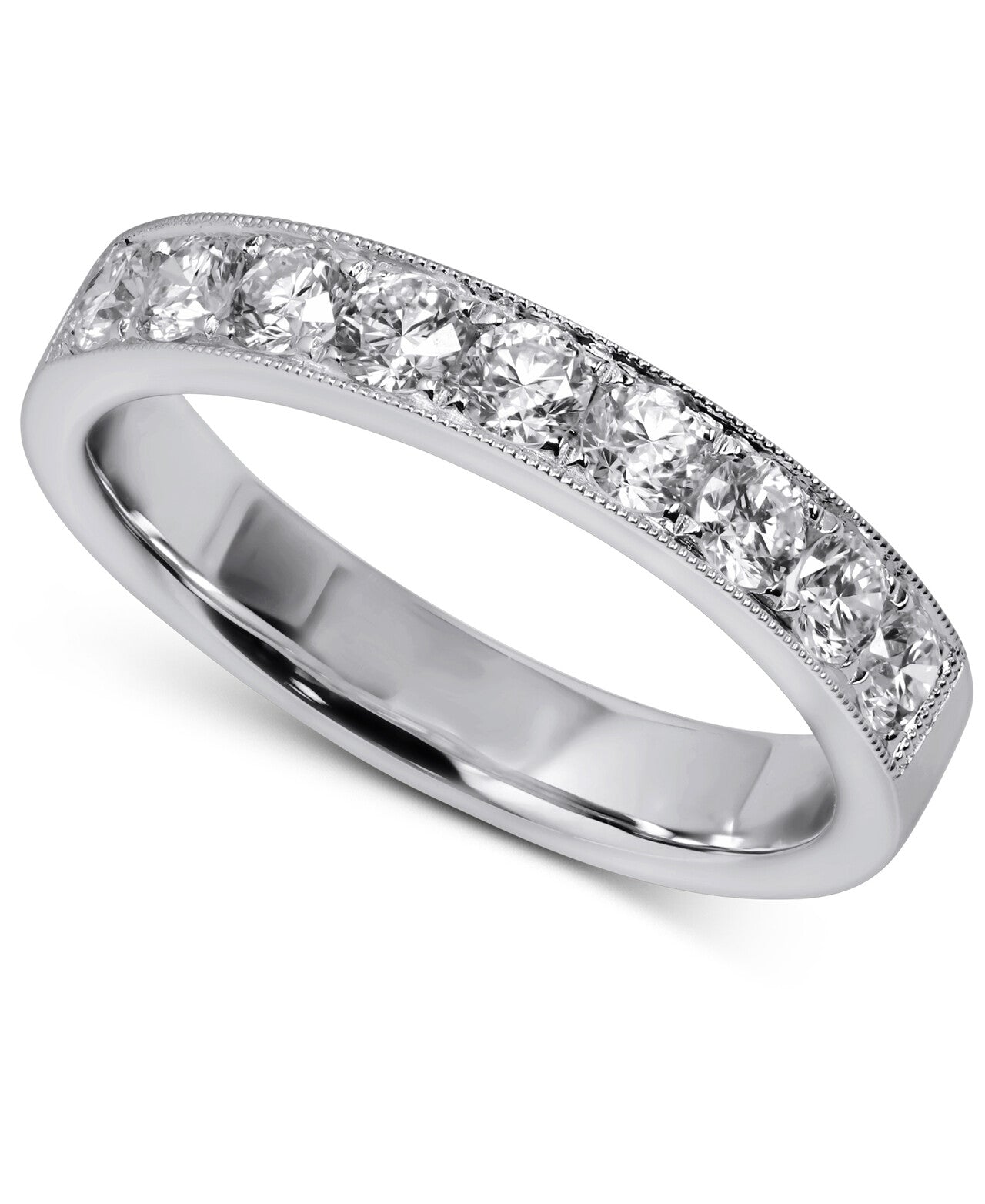 - 18K White Gold band ring with 9 brilliant cut diamonds totaling 0.74 Carat total diamond weight