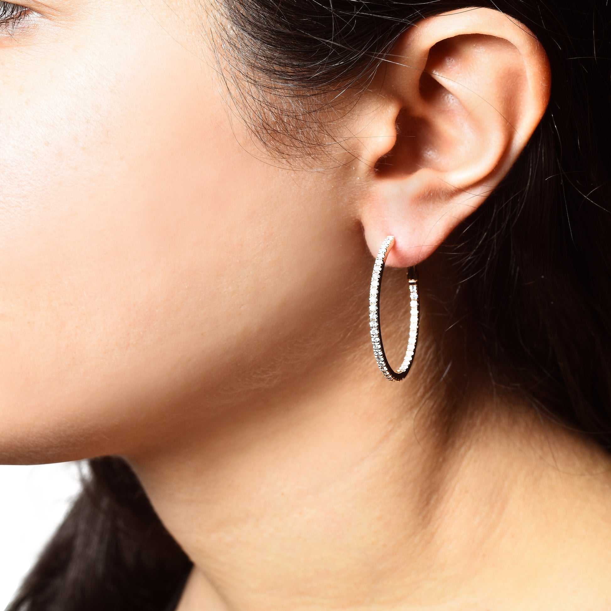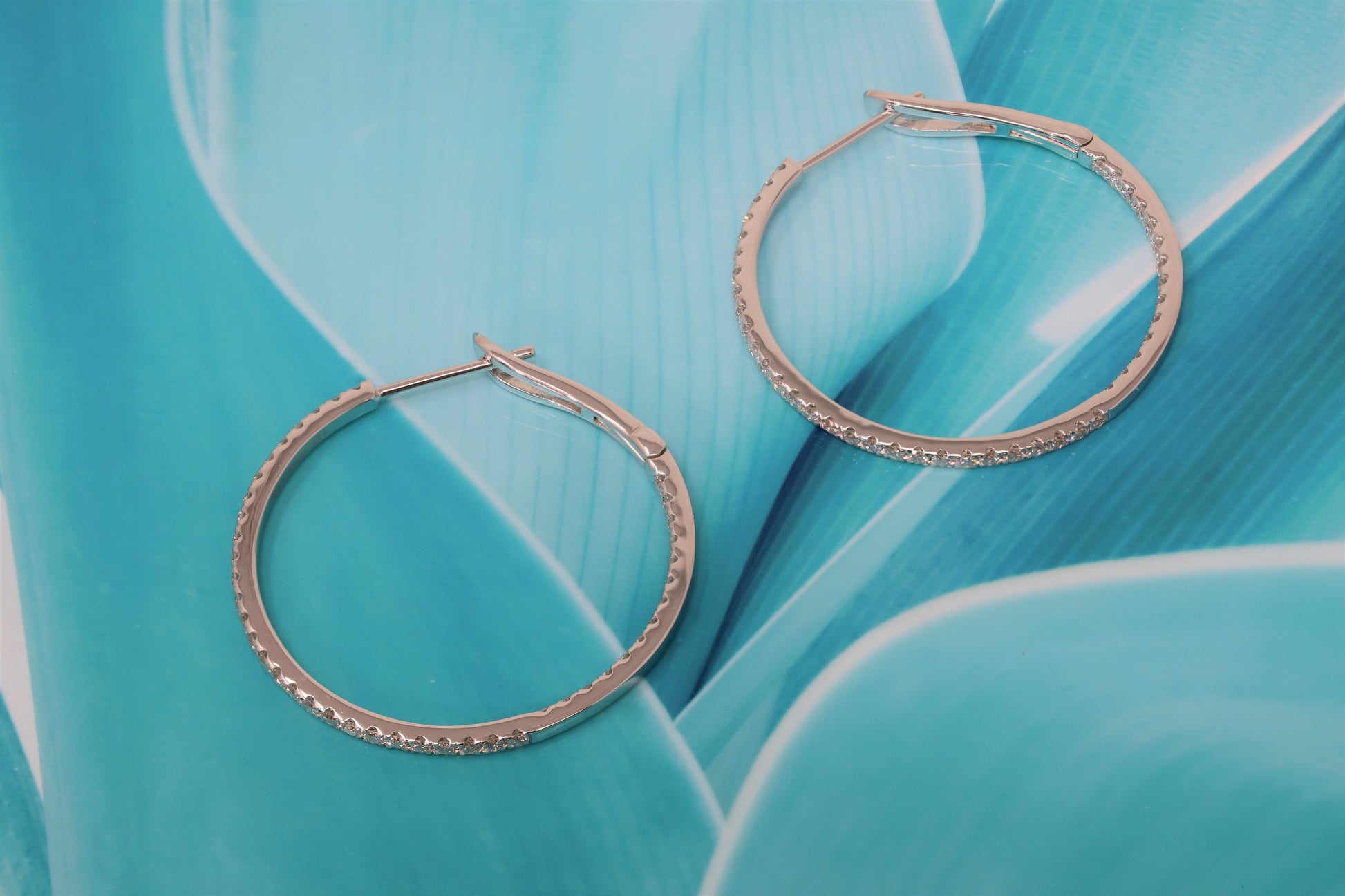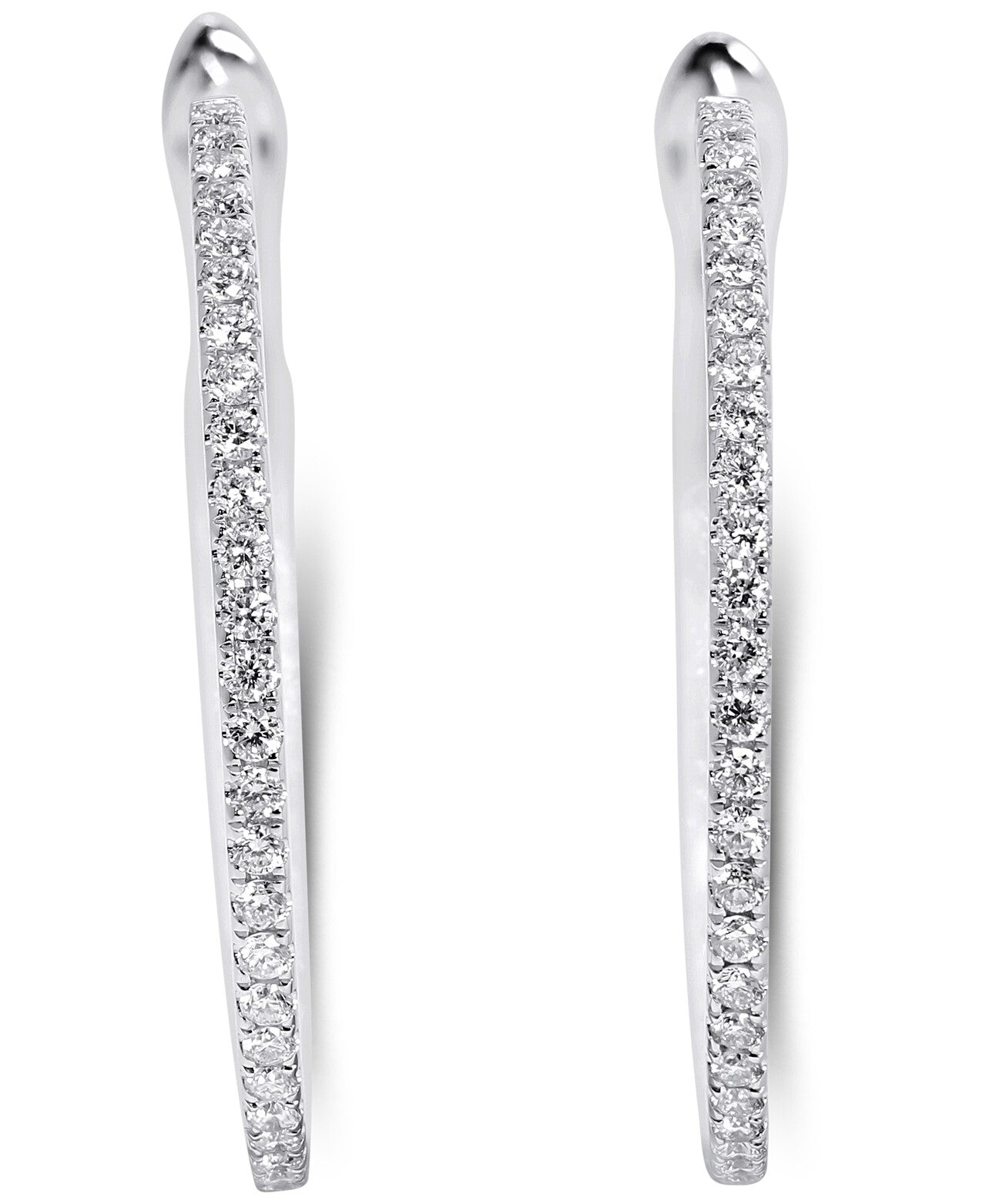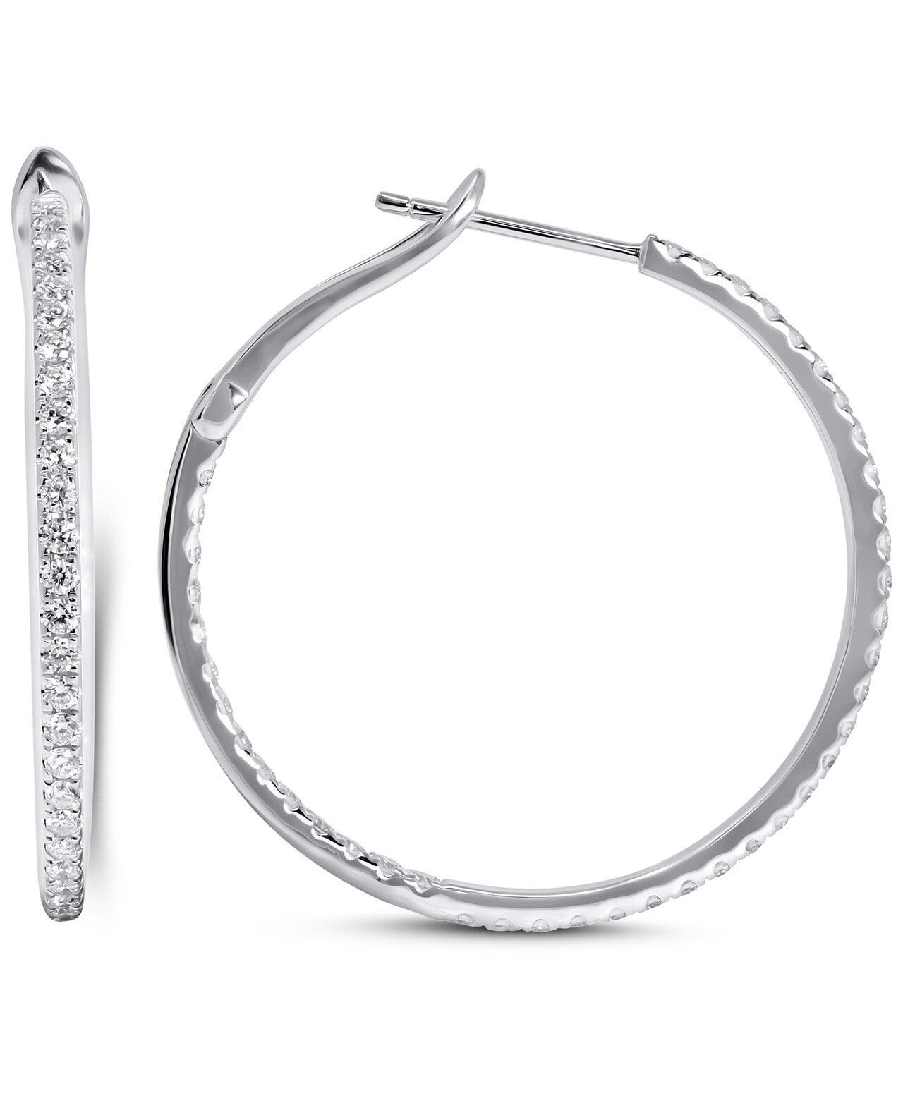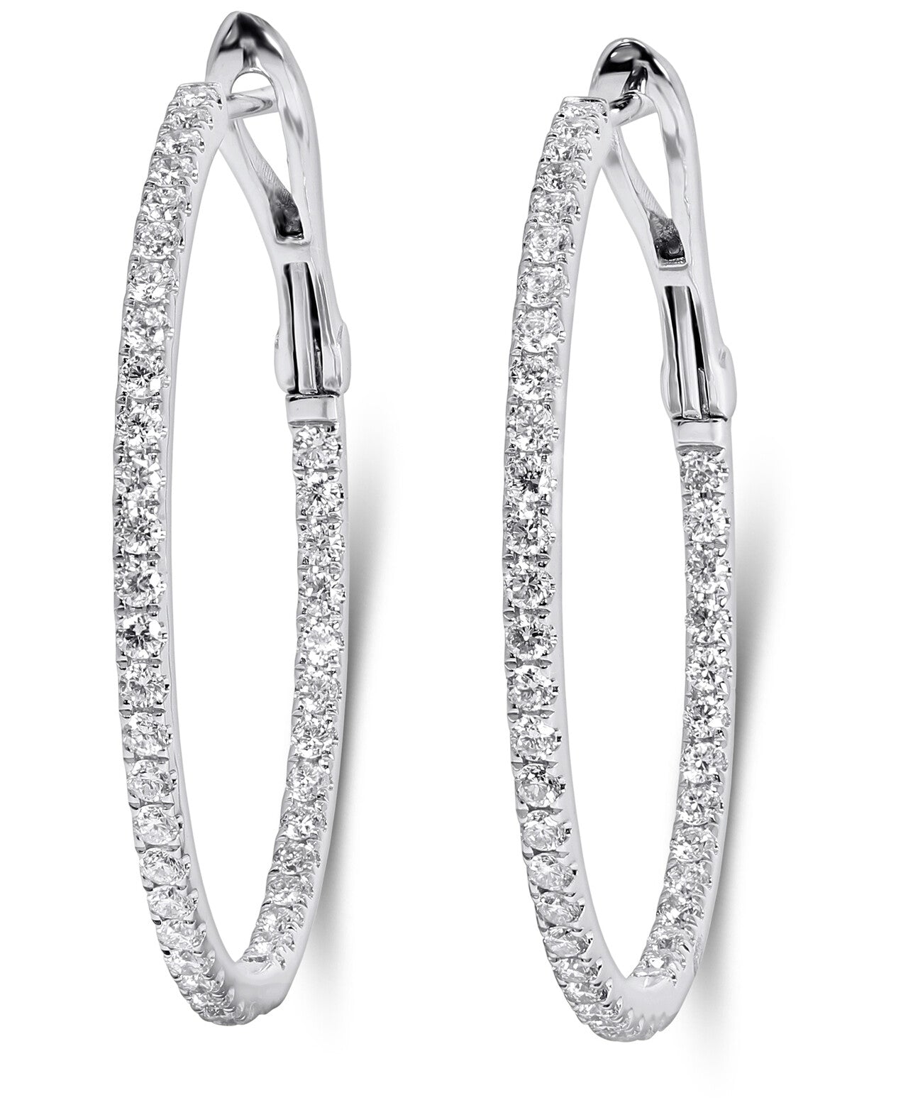 - Diamond hoop earrings look as beautiful as they do stacked alongside each other. Illuminated by shimmering round-cut diamonds Total 1.02 Carats.